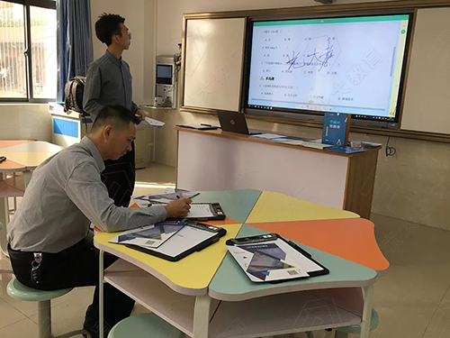 老師們?cè)隗w驗(yàn)中心深度了解紙筆互動(dòng)課堂