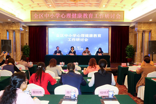 教育部中小學心理健康教育專家指導委員會副主任莫雷教授、廣西幼兒師范高等專科學校校長文萍教授、自治區人民政府參事、督學于瑮教授分別作了《學生不同健康狀態的行為特點與中小學心理健康教育》、《關注青少年心理健康為建設和諧中國貢獻力量》、《心理健康教育課程設計理念及教學建議》的專題報告。
