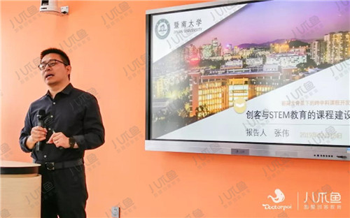 老師們參觀了八爪魚教育課程成功落地的樣板示范!A南師范大學(xué)附屬中學(xué)。華師附中與八爪魚教育合作建立了STEAM創(chuàng)客空間,基于八爪魚教育創(chuàng)客課程體系建設(shè)了一系列特色校本課程。華師附中的老師以此為例,進行了創(chuàng)客教育、智慧校園建設(shè)分享,與老師們共同探討校園創(chuàng)客空間建設(shè)和規(guī)劃方向。