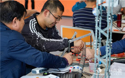 老師們分為幾組,彼此協(xié)作,在講師的協(xié)助下,每個小組都完成了自己的作品。通過體驗課,老師們對于STEAM教育的課堂教學(xué)設(shè)計有了更深刻的理解和興趣,并與講師交流課程開展會遇到的問題和困惑。