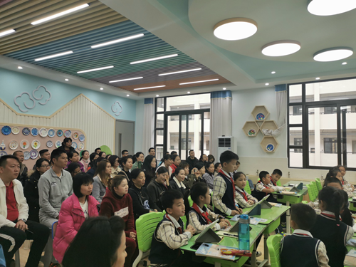 據悉,一直以來南寧市陽光新城學校都在致力于探索未來教學變革。今年,為了構建常態化智慧課堂,五象嶺北校區引進了希沃易課堂。為了增強學校、家長、教師之間的溝通,讓家長走進智慧課堂了解希沃易課堂的管理與教學方式,以及了解孩子在校學習和活動情況,凝聚學校、家庭之間的管理智慧,學校特意邀請學生家長親臨課堂,體驗和交流新型教學模式。