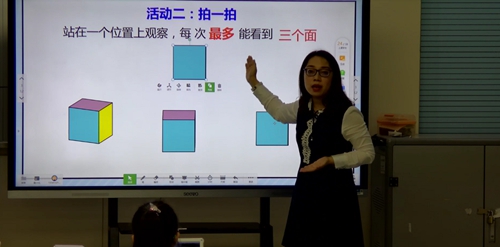 小學(xué)組錄播課例展示現(xiàn)場,由成都市成華區(qū)石室小學(xué)、武侯區(qū)科技園小學(xué)教師代表進(jìn)行了學(xué)科教學(xué)與信息技術(shù)深度融合錄播課例展示。通過錄播課堂呈現(xiàn),讓在場觀摩教師看到優(yōu)秀教師對多媒體素材整合和編輯能力。石室小學(xué)諶老師帶來小學(xué)數(shù)學(xué)《觀察物體》課例展示。通過希沃易課堂平板教學(xué)課堂教學(xué)方式,將學(xué)生理解困難從不同角度觀察簡單物體,每次最多只能看到三個面教學(xué)重點通過信息化教學(xué)工具做了切實呈現(xiàn)。同時在突破教學(xué)難點中,在想象、推理、觀察、驗證活動中提供有力技術(shù)支撐,一對一教學(xué)方式,讓每個小朋友能通過手中教學(xué)課件,進(jìn)行實踐操作、驗證猜想。
