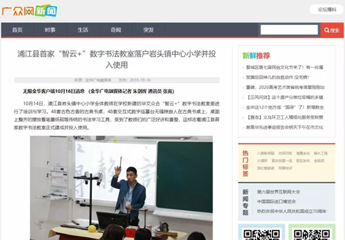 浦江縣首家數(shù)字書法教室正式啟用,獲金華廣電融媒體報道