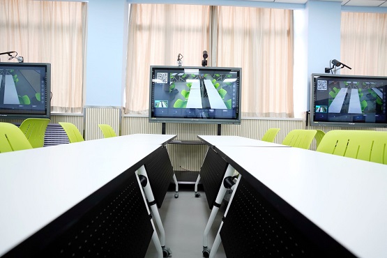 智慧教室內設置了多塊高清電子屏,每臺電子屏裝有吊麥搭配攝像頭,用來記錄學生課題研討的整個過程,課后學生可以下載視頻對自己的研討思路進行復盤總結。