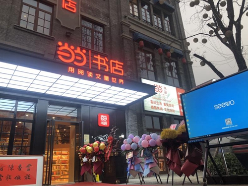 2020年1月18日,寶雞首家當當線下書城落戶陳倉老街,希沃向書店全力支持屏顯設備,旨在通過“閱讀+科技”的模式進一步提升讀者閱讀體驗。希沃云屏、LED小間距一體機、希沃F3款交互智能平板都在本次寶雞當當書店開業儀式中大放異彩。