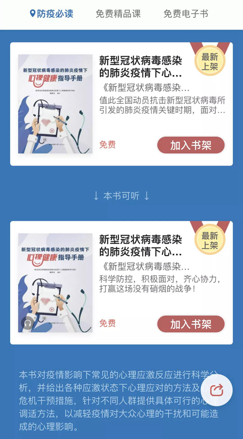 該專題精選最全的防疫必讀書籍,包括疫情期間公眾的心理自助疏導(dǎo),除了可閱讀的電子書,為方便用戶獲取信息,掌閱還上架了部分書籍的有聲版本,用聽(tīng)書的方式普及知識(shí)。