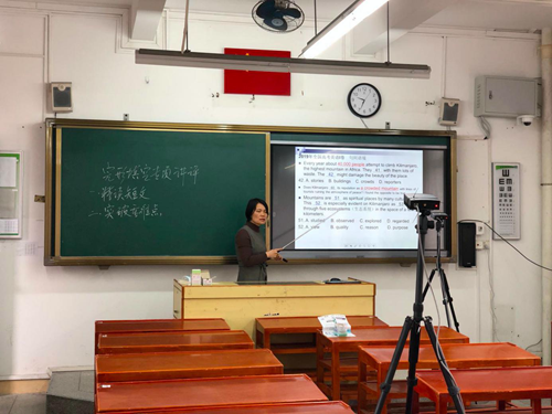 “站在講臺上講課,面對熟悉的教學環境,就跟平時一樣,學生就像坐在我們跟前聽課。”