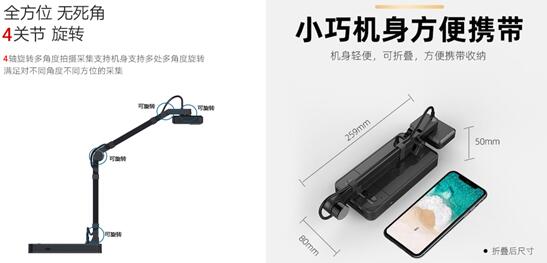 老師在遠程線上直播授課,進行音視頻互動的同時,電腦外接在線課堂直播/錄播輔助教學設備——良田折疊便攜式高拍儀YL1050AF,能高效應用于多媒體教學模式,能夠最大程度還原線下課堂教學場景,幫助學校與老師解決“停課不停學”的迫切需求。YL1050AF可多角度靈活拍攝,可折疊,小巧便攜,A3幅面,1000萬像素,支持HDMI脫機實物展示,高清無拖影。