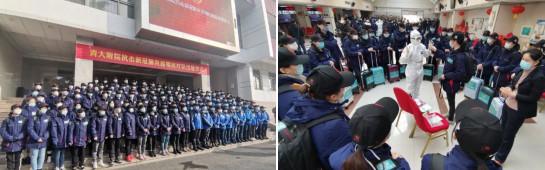 圖1身著威達冬裝的青島援鄂醫療隊出征儀式