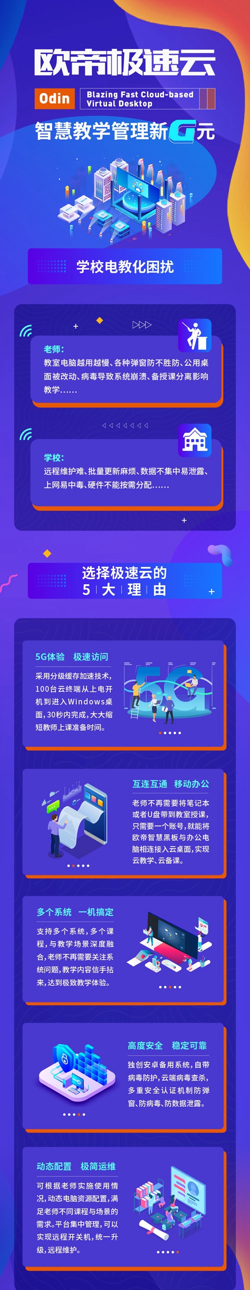 5G時代,智慧教學管理即將進入新G元。歐帝極速云,更快解決智慧教學中存在的使用和管理問題,是學校和老師必不可少的智慧教學管理云平臺。