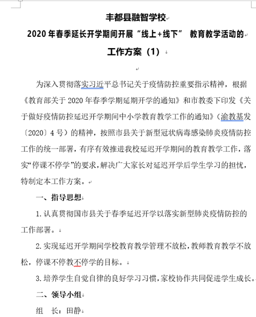 面對疫情,豐都融智學校為相應政策號召,貫徹春季延遲開學及落實新型肺炎疫情防控的工作部署,部署各種舉措保障停課不停教、停課不停學,著力培養學生自覺自律學習習慣,家校共育促進學生成長,大力開展“線上+線下” 教育教學活動。