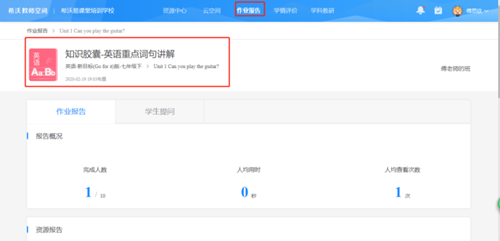 雖然我們可以找到許多的微課視頻發給學生學習,但老師們才是最了解學生的學習情況和學習習慣的,老師自己結合課文內容錄制的知識膠囊,會給同學們一種在家也可以聽老師上課的感覺,更加貼近學生平時的學習狀態。通過教師空間下發知識膠囊還可以查看作業報告,錄制膠囊-布置給學生觀看-查看學生學習情況,形成一個完整的閉環。