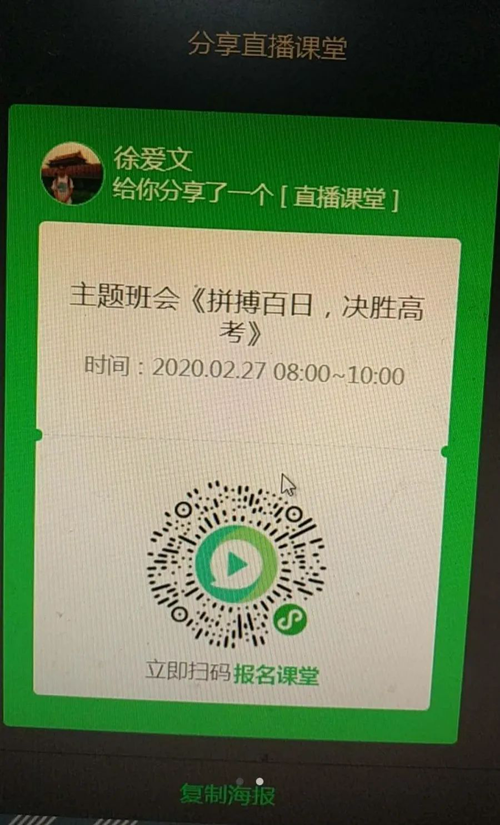 據(jù)悉,這次班會因?yàn)槭窃诎偃帐膸熐埃詤⒄漳昙壱蠛妥约喊嗌锨闆r,主要是百日誓師的互動和在家學(xué)習(xí)的研討,這項(xiàng)準(zhǔn)備和平時班會一樣制作課件。不同的是因?yàn)槔蠋煵荒艿浆F(xiàn)場,所以需要提前錄制視頻,并且將PPT導(dǎo)入到希沃云課件,通過云課堂生成二維碼分享到微信群,學(xué)生不需要安裝任何應(yīng)用,直接掃描老師分享的二維碼就能進(jìn)入課堂聽課,這個相比很多在線課堂都需要學(xué)生重新下載APP更加便捷。
