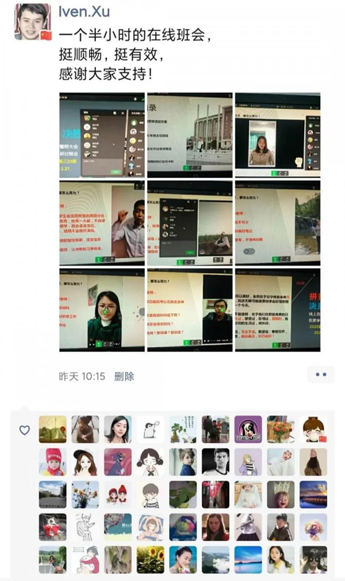 在線直播的過程中,學(xué)生可以像用微信一樣直接回復(fù)文字,老師也可以語音回復(fù),這種互動相比視頻會議,避免了各種聲音嘈雜而且保證了播放的流暢的優(yōu)點(diǎn)。在班會開始的5分鐘左右的時間里,學(xué)生就差不多都上線了,其播放不卡,畫面清晰。會后同學(xué)表示:“這是一次特殊的班會,在這種抗擊疫情的特殊時期,我們?nèi)嗤瑢W(xué)能夠以線上的形式,全員聚在一起,既興奮又覺得充滿了使命感。”