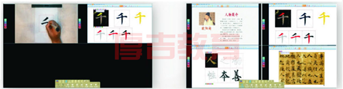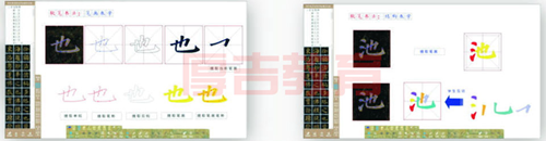 系統配備的全息碑帖單字,均具有四種模型講解方式和七種筆畫教學工具,可以提取任意單字的所需筆畫進行詳細講解,再配合圖形庫中的助解工具教師可以從不同側重點靈活講解。