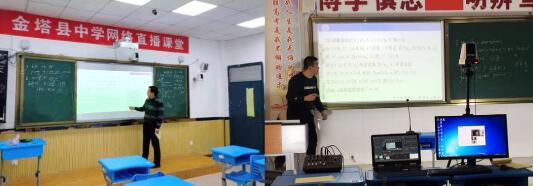 圖為金塔縣名師通過奧威亞設(shè)備開展空中課堂