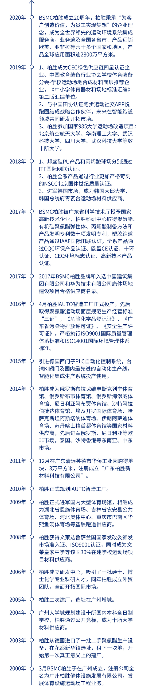 2016年毒跑道事件,行業(yè)內(nèi)沉寂一片時(shí),柏勝接下位于廣州市CBD中心的天河中學(xué)跑道場地鋪設(shè)項(xiàng)目,并且同年全面開拓國際市場,這在當(dāng)時(shí)是絕無僅有的。