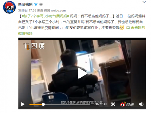 近日,一位熊孩子寫完7個字,歷時三個小時!氣哭了老母親:“我不想當他媽媽了,我也想控制我自己啊!”