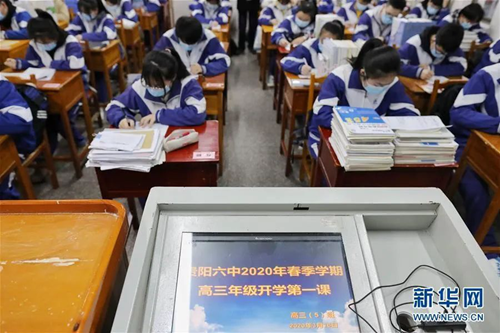 貴陽市第六中學高三學生在開學第一堂課開始前自習。