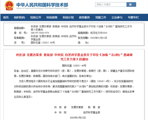 當前,新一輪科技革命和產業變革蓬勃興起,國際競爭向基礎研究競爭前移,科學探索不斷向宏觀拓展、向微觀深入,交叉融合匯聚不斷加速,一些基本科學問題孕育重大突破,可望催生新的重大科學思想和科學理論,產生顛覆性技術。為解決我國基礎研究缺少“從0到1”原創性成果的問題,科技部、發展改革委、教育部、中科院、自然科學基金委近日印發《加強“從0到1”基礎研究工作方案》(以下簡稱《方案》)。