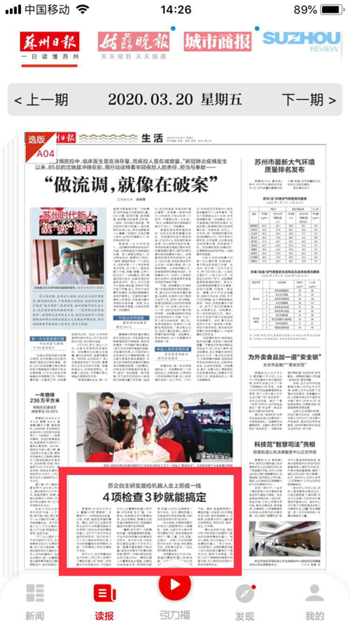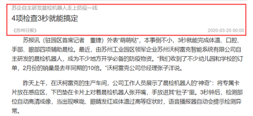 沃柯雷克晨檢機器人走上防疫一線,蘇州日報關注報道
