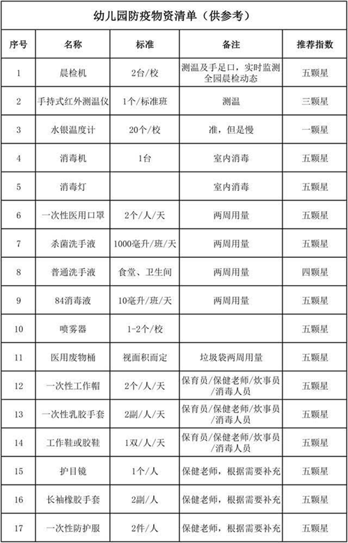 開學了,最全的幼兒園防疫物資清單!10萬+園長收藏!