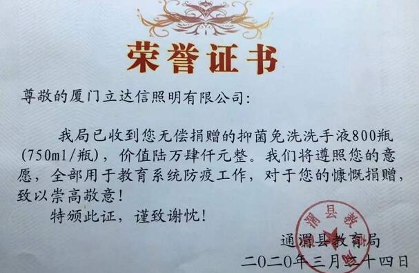 立達信教育照明合作伙伴陳總表示:“選擇立達信這樣的企業合作,從他們身上我們可以更多的看到一個大品牌所具備的社會擔當和責任,很高興能夠跟立達信一起做這樣的暖心捐贈!”