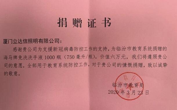作為教育照明領域的開創者和領跑者,立達信一直心系教育,關注學校防疫需求,分批次采購了價值600萬防疫物資,并陸續向全國各地學校進行無償捐贈,助力開學季!