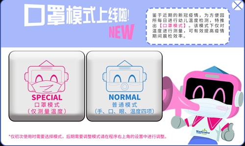 疫情之下,面對各校園復學的迫切需要,沃柯雷克積極響應國家號召,第一時間行動起來,啟動了一級防疫措施,如新研發的口罩模式、升級空氣強排裝置避免飛沫停留、優化抑菌方案等等,為幼兒入學提供更貼心更優質的晨檢服務。