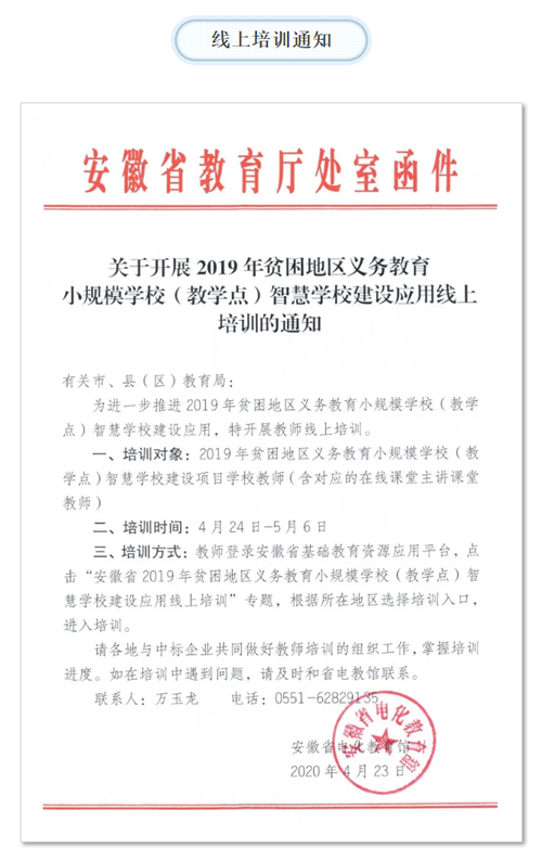 通知指出:為進一步推進2019年貧困地區義務教育小規模學校(教學點)智慧學校建設應用,特開展教師線上培訓。