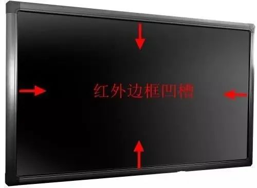 而紅外觸控黑板會配一個凸起的邊框,邊框里面一一對應地排列著紅外接收管和發射管,這樣才能在屏幕表面形成紅外光網,實現觸控感應。