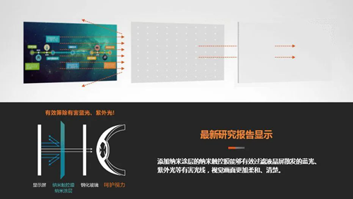原來,納米黑板采用的是納米玻璃,透光率高達96.5%,表面還覆蓋了納米涂層,能過濾80%的有害紅外光、紫外光和藍光。