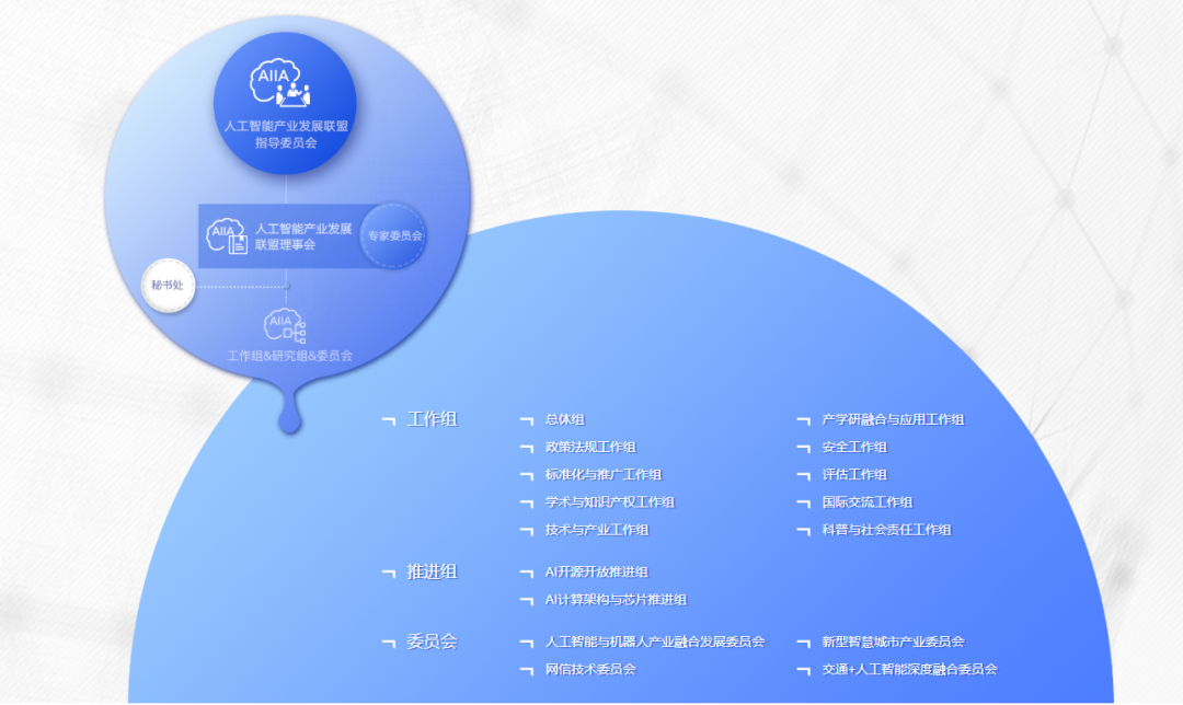 AIIA是在國家發(fā)展改革委、科學(xué)技術(shù)部、工業(yè)和信息化部、中央網(wǎng)信辦等部門的指導(dǎo)和支持下,由中國信息通信研究院牽頭會同中國電子技術(shù)標(biāo)準(zhǔn)化研究院、國家工業(yè)信息安全發(fā)展研究中心等單位,共同發(fā)起成立。聯(lián)盟旨在促進(jìn)我國人工智能產(chǎn)業(yè)發(fā)展,搭建政產(chǎn)學(xué)研用合作平臺,強(qiáng)化人工智能與經(jīng)濟(jì)社會各領(lǐng)域深度融合,構(gòu)建我國人工智能產(chǎn)業(yè)生態(tài),推動產(chǎn)業(yè)協(xié)同合作創(chuàng)新。