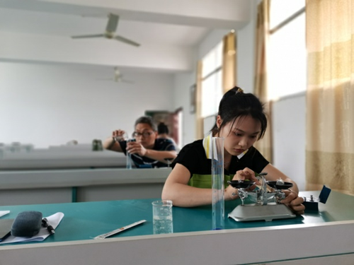 5月15日下午,宜春市萬載縣第二中學的實驗室里匯聚了一批特殊的實驗員。在實驗操作臺前,這些特殊的實驗操作人員在一絲不茍地進行著物理、化學實驗操作,現場氣氛緊張而不失嚴謹。實驗過程中,他們動作純熟,思路清晰,步驟有條不紊,看起來完全不像初出茅廬的青澀學子。