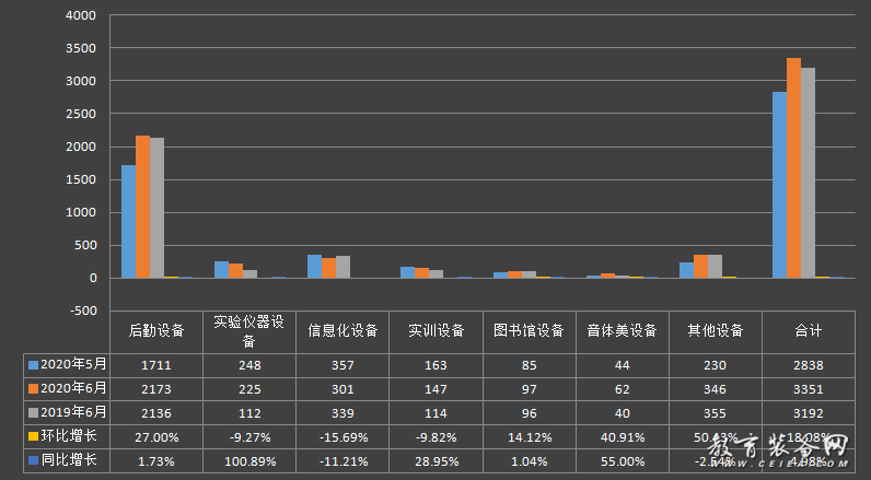 6月份教育裝備行業招標采購信息量同比小幅增長