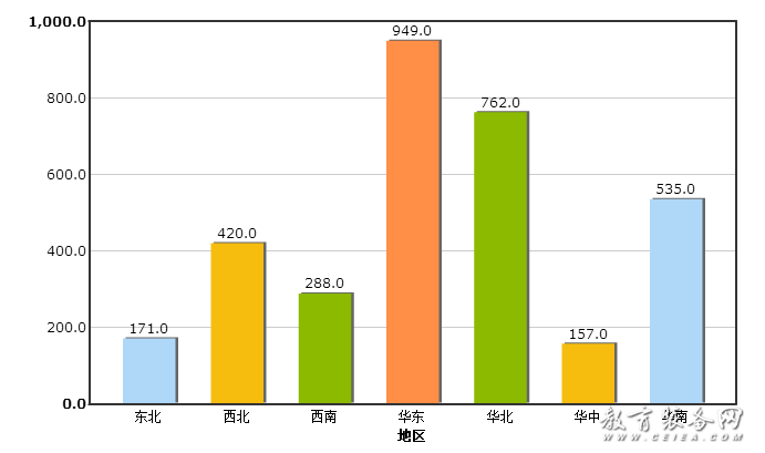 圖3 6月份教育裝備招標采購信息地區統計圖 (單位:條)