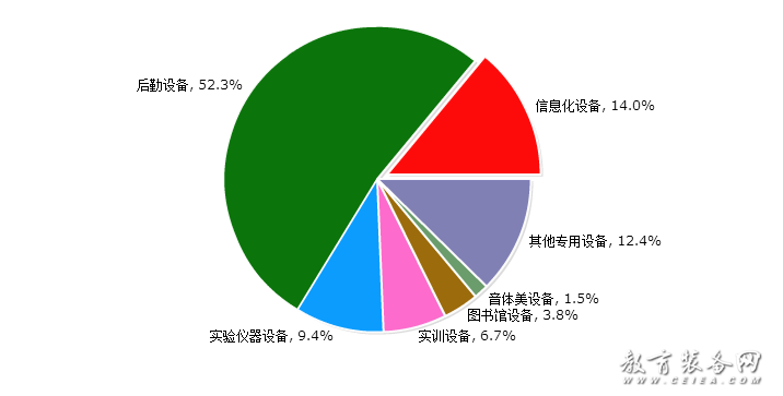 與去年同期相比,除信息設備、其他專用設備分別下降11.21%、2.54%外,其他類別教育裝備招標采購信息量均有不同程度的增長,增長幅度較大的為實驗儀器設備,增長100.89%。