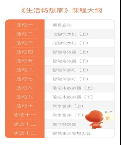 《生活暢想家》以用科學技術(shù)解決生活中的小問題作為切入點,引導學生以設計師和工程師的身份設計并制作多個智能產(chǎn)品小模型,親身感受智能化的產(chǎn)品為生活帶來的便捷。課程主要針對四年級的學生,共計16個課時。