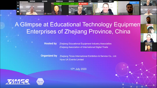 7月17日,浙江省教育技術裝備企業線上國際推介會在杭州舉行。推介會由浙江教育裝備行業協會和浙江國際數字貿易協會主辦,浙江時代國際展覽服務公司和全球知名英國數字教育裝備展(BETT)組委會英國Hyve集團聯合承辦。會議旨在通過借助全球最大教育展組委會的優質資源優勢,為我省教育技術裝備企業搭建與境外數字教育領域采購商合作與交流的平臺,引導我省教育技術裝備企業創新營銷方式,幫助我省教育技術裝備企業穩外貿、拓市場。