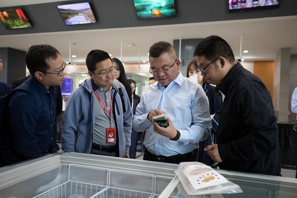 楊建華一行參觀了交易中心一樓的電子交易大廳、特色展館區(qū)、物聯(lián)網(wǎng)監(jiān)測中心、鑒真溯源防偽中心、超算中心以及網(wǎng)紅直播區(qū),對交易中心特色電商業(yè)務開展、技術保障、進行全面了解。青海農(nóng)林牧商品交易中心技術負責人向大家詳細介紹了交易中心的業(yè)務組成與大數(shù)據(jù)核心技術、信息安全及新立訊“愛查必查”、“鑒真溯源云平臺”等。