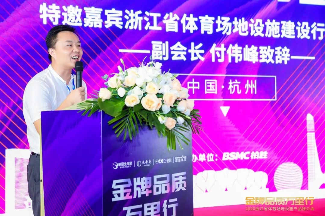 為了響應國務院規劃2025年人均體育場地面積達到2平方米目標的建設,和浙江省政府《計劃》,推動著體育行業建設朝著持續優化發展,2020年8月22日,4家聯合主辦單位與協辦單位,在浙江杭州和達希爾頓逸林酒店聯合舉辦“金牌品萬里行,2020浙江省體育場地設施產品推介會”。主辦單位包括,河北杰帝奇體育用品有限公司、廣東北斗星體育設備有限公司、河北宏康體育器材有限公司、南京飛能橡塑制品有限公司,協辦單位為廣東柏勝新材料股份有限公司,助力中國體育場地設施廠家品牌建設,為打造浙江全民健身中心工程項目貢獻一份力量。
