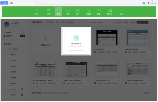 在WPS內新建在線文檔