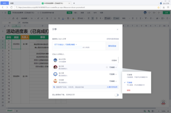 除此之外,該功能一如既往地延續了金山文檔在“多人編輯”功能的強勁功底。可打破客戶端的本地傳統編輯限制,使用戶在客戶端內實現多人同時在線編輯,一條共享鏈接,邀請多人同時編輯一份文檔。