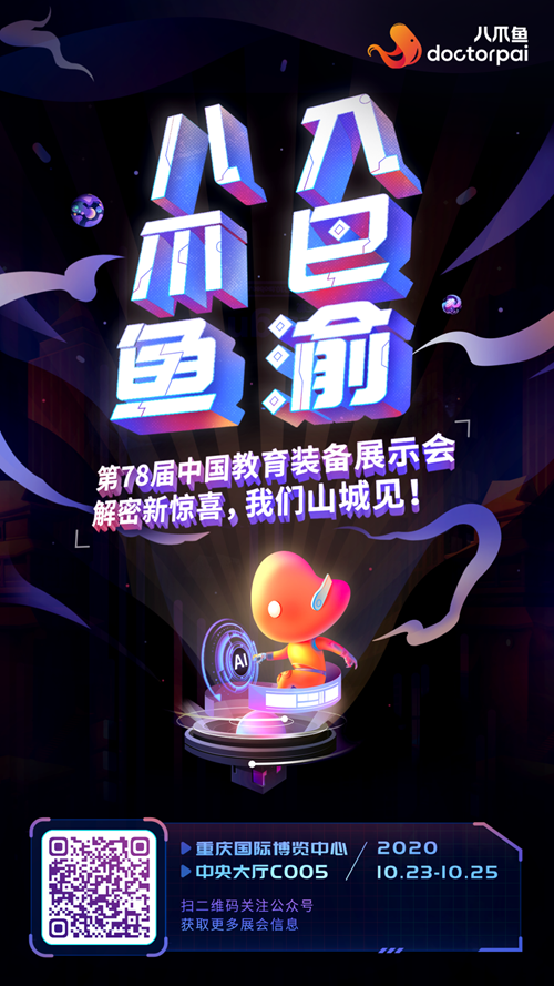 10月23日,第78屆中國教育裝備展示會即將在山城重慶拉開帷幕,本屆教育展由中國教育裝備行業協會主辦,重慶市教育委員會、重慶市商務委員會承辦。八爪魚教育將在本次展會為大家帶來創新教育的最新成果,展示我們這一年來的變化。