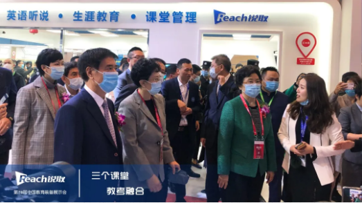 中國關心下一代工作委員會副主任、中紀委駐教育部紀檢組原組長田淑蘭,中國人民大學黨委書記靳諾,教育部關心下一代工作委員會常務副主任、中國教育裝備行業協會會長王富,重慶市委教育工委書記、重慶市教育委員會主任黃政,廈門市人民政府副市長國桂榮,中國教師發展基金會秘書長王建光,中國人民大學副校長朱信凱,中國教育裝備行業協會常務副會長李興植,中國教育裝備行業協會監事會監事長李耀建,浙江省教育廳黨委委員、副廳長陳峰,福建省教育廳副廳長王飏等一行領導親臨銳取展位