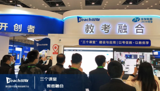 展會上,銳取聯合佳發教育展出業內首創以“錄播”與“標考”為基礎,以“三個課堂”應用為核心的“教考融合”創新方案,吸引了大批觀展嘉賓前來駐足、問詢,讓銳取展位門庭若市、人流如潮。