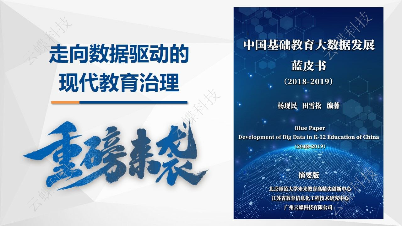 2020年10月22日在重慶舉行的《中國(guó)基礎(chǔ)教育大數(shù)據(jù)發(fā)展藍(lán)皮書(shū)發(fā)布會(huì)》上,作為藍(lán)皮書(shū)主編之一,云蝶科技總裁田雪松博士做了關(guān)于《中國(guó)基礎(chǔ)教育大數(shù)據(jù)發(fā)展藍(lán)皮書(shū)(2018-2019)》內(nèi)容解讀的報(bào)告。本次藍(lán)皮書(shū)的主題聚焦于“數(shù)據(jù)驅(qū)動(dòng)的現(xiàn)代教育治理”,致力于利用教育數(shù)據(jù)解決教育治理各領(lǐng)域的問(wèn)題。