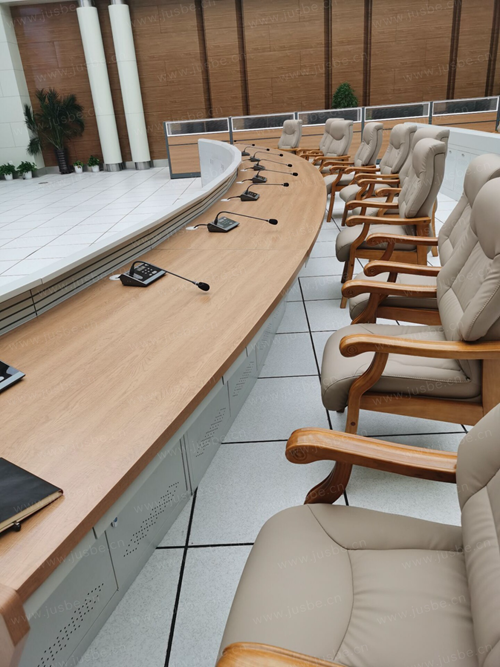 指揮中心主席臺,采用的手拉手會議系統(tǒng),支持討論和視像跟蹤功能,具備多種會議模式選擇。系統(tǒng)可設(shè)置發(fā)言數(shù)量、自動/限時關(guān)閉、聲控發(fā)言等功能。會議系統(tǒng)討論單元采用防干擾電路設(shè)計,超指向電容話筒,實(shí)現(xiàn)高品質(zhì)聲音拾取。話筒帶聲頻啟動功能,發(fā)言時話筒單元電源自動打開。其中,主席單元擁有優(yōu)先發(fā)言權(quán)。