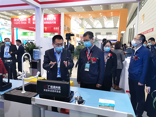 陜西省教育廳教育技術(shù)裝備管理中心主任趙夢蒞臨廣視通展位參觀指導(dǎo)