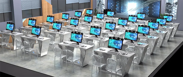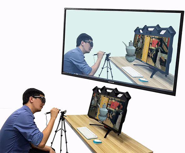 學生可自行操作桌面VR交互一體機來學習歷史知識,該設備采用120Hz 1080p 高清24寸3D立體顯示器,結合虛擬現實技術(VR)和增強 現實技術(AR)技術,提供了沉浸、交互及仿真的體驗。